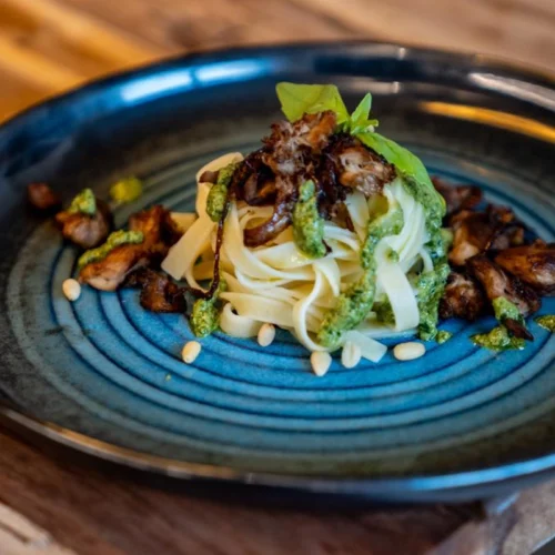 This pasta is a fresh take on a classic, built around simplicity and quality ingredients. Familiar Italian flavours meet the depth and texture of market-fresh mushrooms, creating a dish that feels both comforting and new. Light, seasonal, and quietly satisfying.